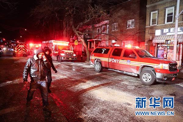 12月29日凌晨,人們從美國紐約布朗克斯區發生火災的樓房附近經過。新華社記者 王迎 攝