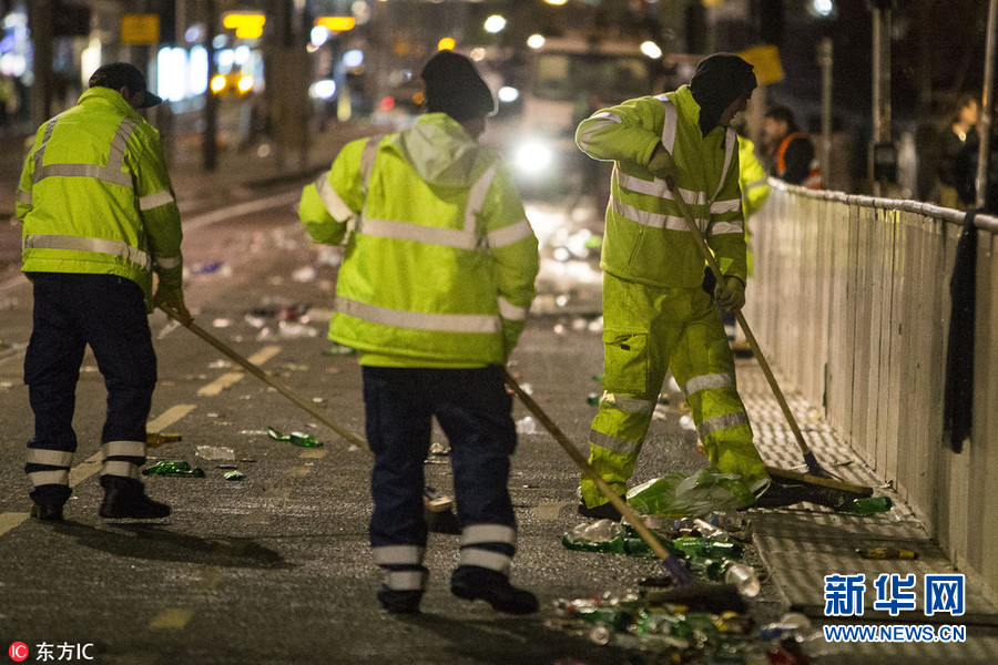 英國:狂歡過后遍地垃圾 清潔工作者清理跨年夜殘局