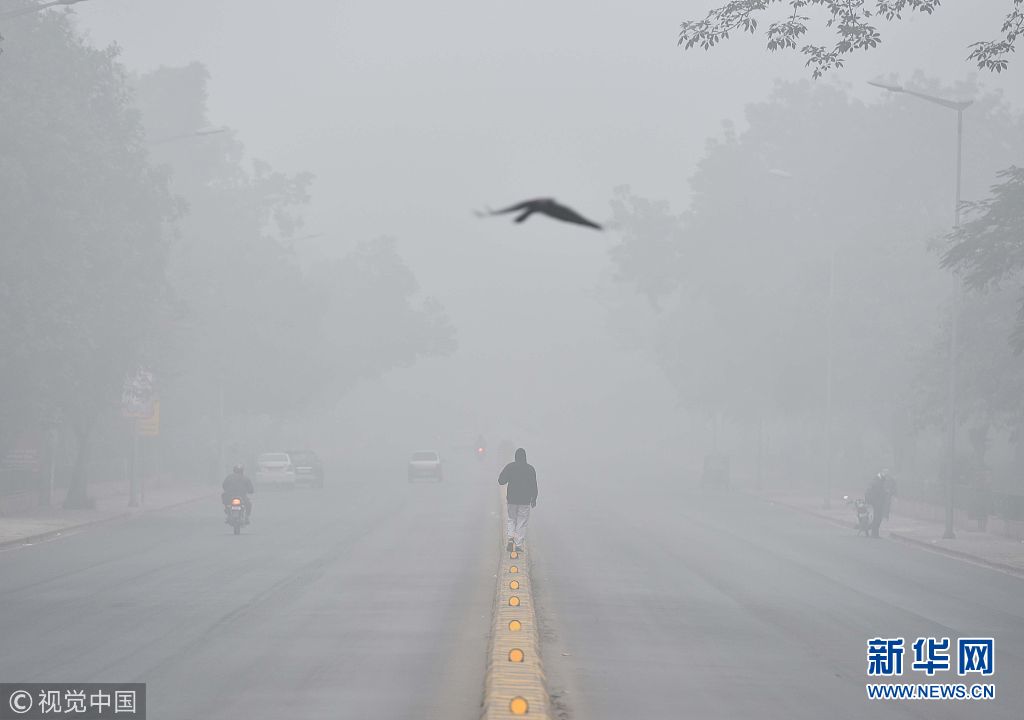 當(dāng)?shù)貢r(shí)間1月2日,印度新德里遭遇冷空氣及強(qiáng)霧霾天氣,能見(jiàn)度低。 (圖片來(lái)源:視覺(jué)中國(guó))