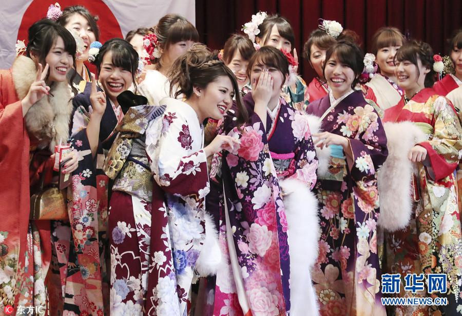 日本和服妹子出席“成人節”慶祝儀式 開心玩自拍