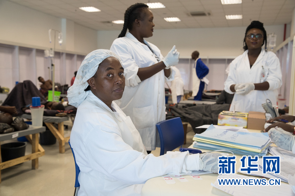 1月9日,一名醫護人員在位于國家英雄體育場的霍亂治療中心男性病房內工作。新華網發 (彭立軍攝)