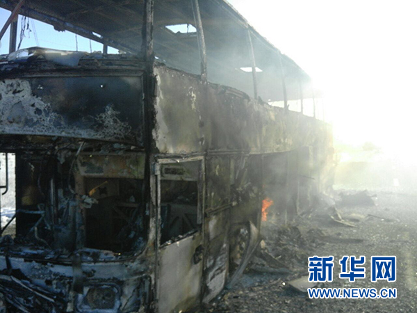 新華社快訊:據(jù)外電報道,18日哈薩克斯坦阿克糾賓州一輛公交車起火,導(dǎo)致50多人死亡。2018-01-18 15:21:53