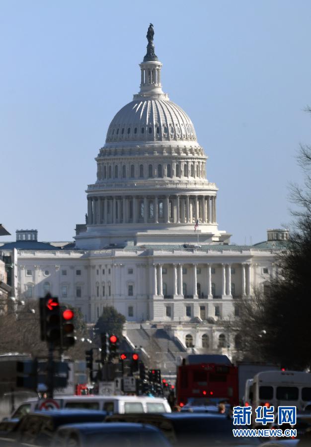 ????這是1月19日在華盛頓拍攝的美國國會大廈。由于美國國會參議院未能通過聯邦政府臨時撥款法案,聯邦政府非核心部門從當地時間20日凌晨開始關門。新華社記者 殷博古 攝