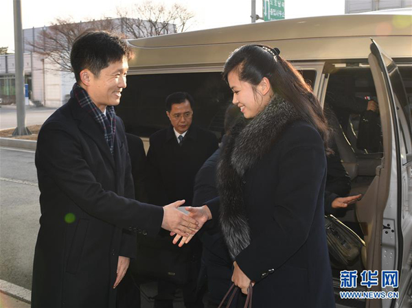 1月21日,朝鮮三池淵管弦樂團(tuán)團(tuán)長玄松月(右)到達(dá)位于朝韓邊境的韓國京畿道坡州市京義線韓朝出入境事務(wù)所。新華社發(fā)(韓國統(tǒng)一部提供)