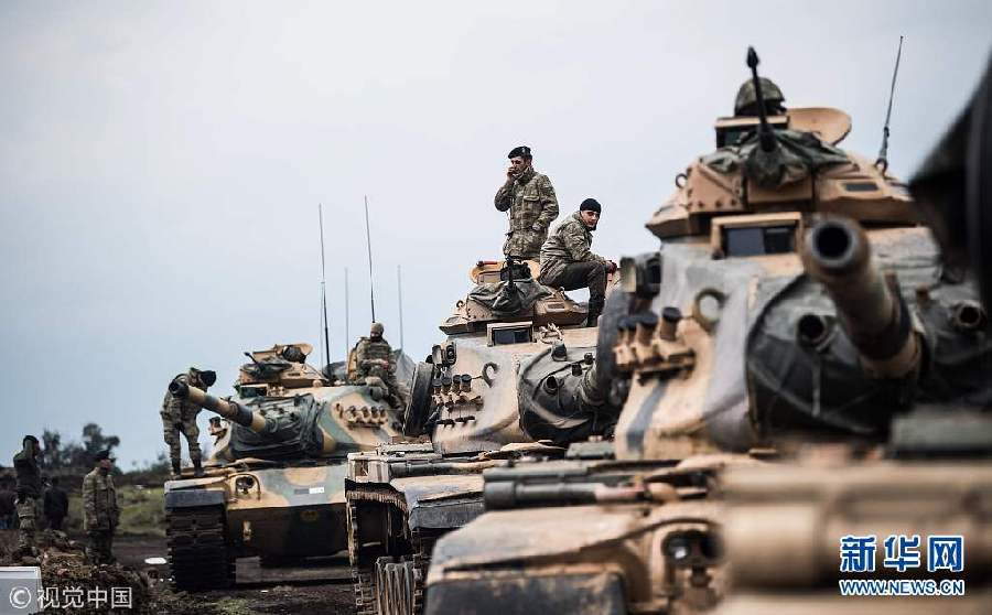 當地時間1月21日,土耳其哈塔伊省,土耳其部隊在土敘邊境哈薩鎮附近。(圖片來源:視覺中國)