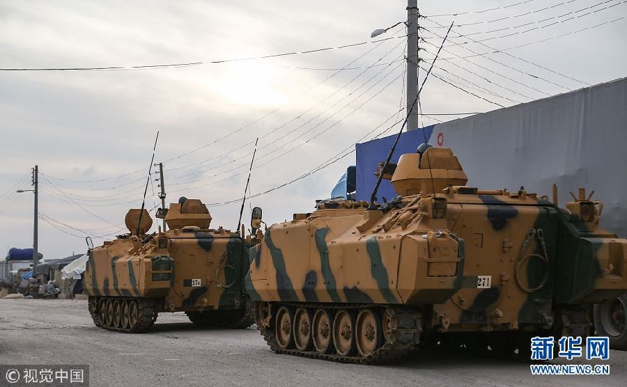 當(dāng)?shù)貢r間1月21日,土耳其哈塔伊省,土耳其部隊在土敘邊境哈薩鎮(zhèn)附近。(圖片來源:視覺中國)