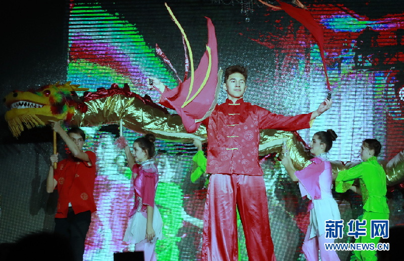烏克蘭學生表演舞龍。新華網發(陳俊鋒攝)