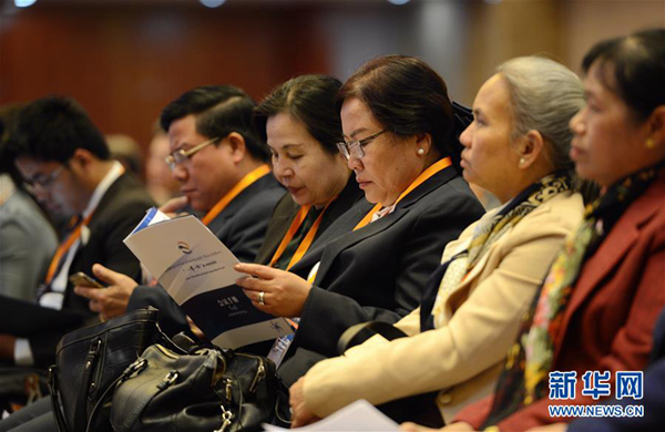 2月2日,在老撾首都萬(wàn)象,嘉賓出席首屆“一帶一路”老-中合作論壇。首屆“一帶一路”老-中合作論壇2日在老撾首都萬(wàn)象開幕。論壇圍繞中共中央總書記、國(guó)家主席習(xí)近平去年11月對(duì)老撾進(jìn)行國(guó)事訪問達(dá)成的各項(xiàng)成果,探討“一帶一路”倡議與老撾國(guó)家發(fā)展戰(zhàn)略對(duì)接,共商中老發(fā)展合作大計(jì)。新華社發(fā) 劉艾倫 攝