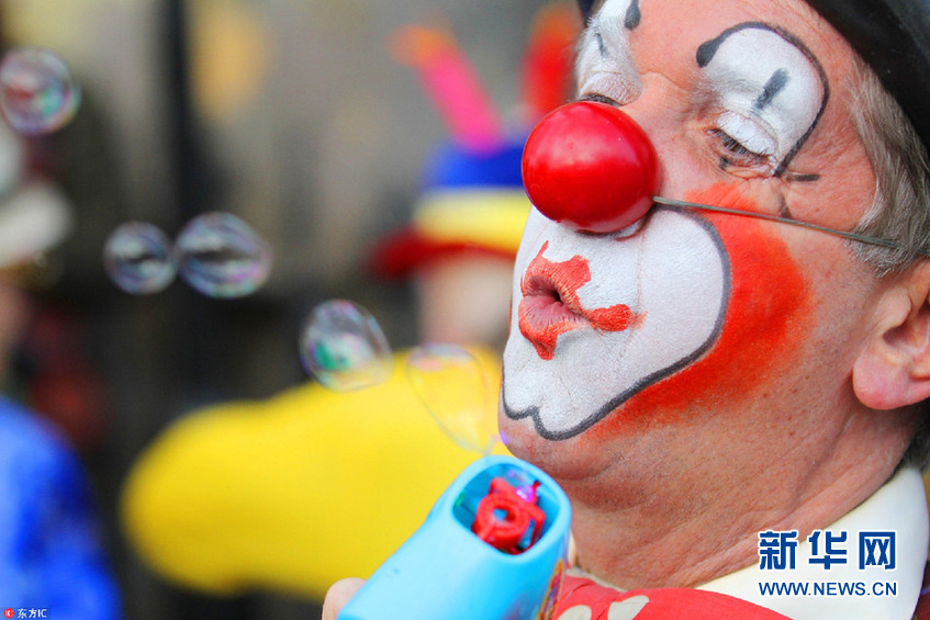 英國倫敦小丑歡聚一堂 紀念“小丑之父”