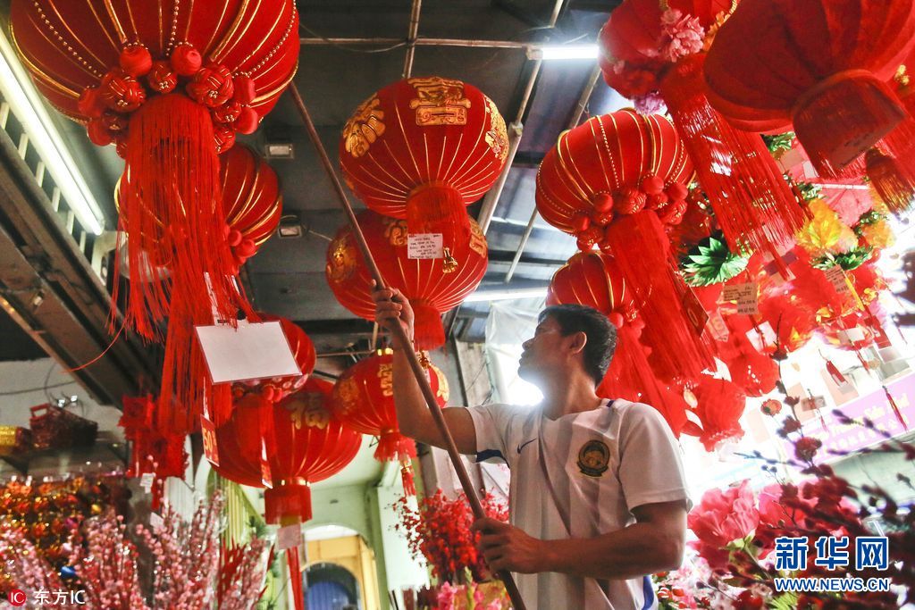 當(dāng)?shù)貢r間2018年2月11日,馬來西亞吉隆坡,中國農(nóng)歷新年將至,當(dāng)?shù)啬曦浭袌黾t火。(圖片來源:東方IC)