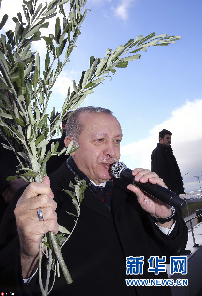 土耳其總統(tǒng)埃爾多安出席集會 手持橄欖枝發(fā)表講話