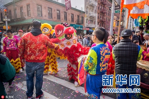 在美國各地的唐人街,節(jié)日氣氛尤其濃厚,鑼鼓震天、鞭炮齊鳴,舞獅隊伍走上街頭,祈愿人們生活紅紅火火,運氣越來越好。