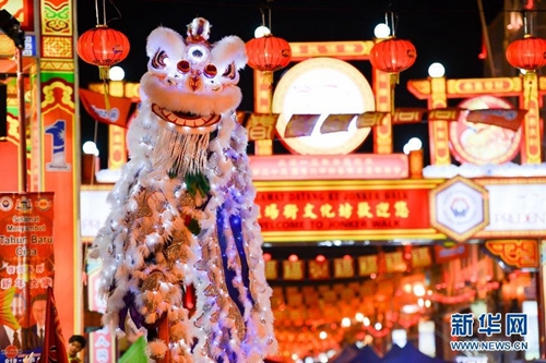 2013年馬來西亞元宵節(jié),馬六甲武術龍獅總表演舞龍舞獅,大鬧元宵。新華社發(fā) 張紋綜攝