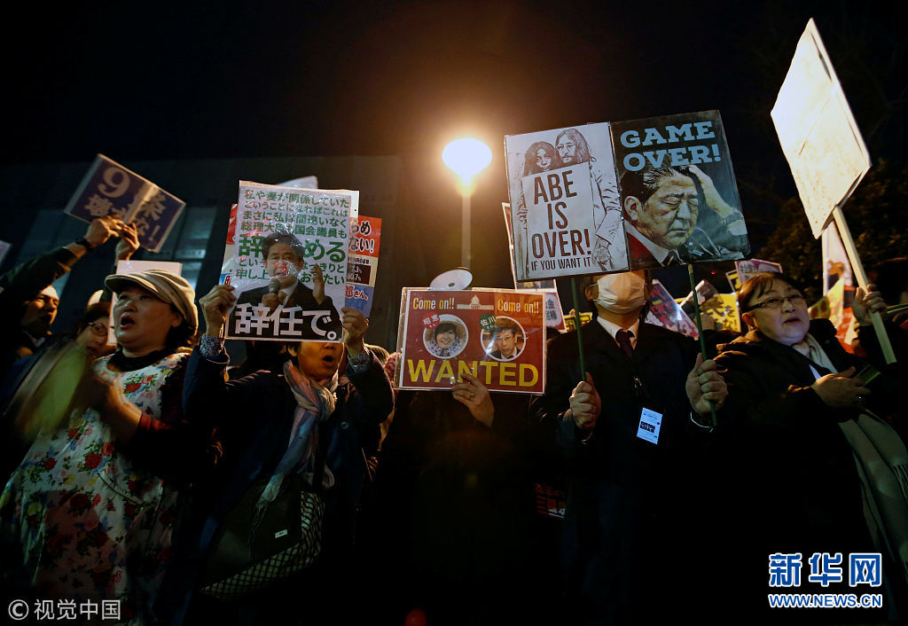 日本民眾首相府邸前游行 抗議安倍晉三夫婦