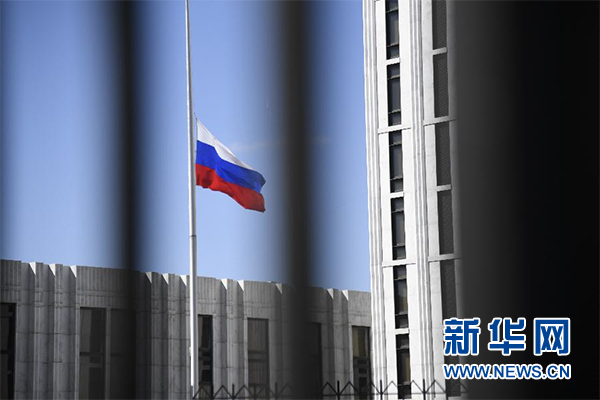 這是3月26日在美國(guó)首都華盛頓拍攝的俄羅斯駐美國(guó)大使館內(nèi)的俄羅斯國(guó)旗。新華社記者楊承霖?cái)z