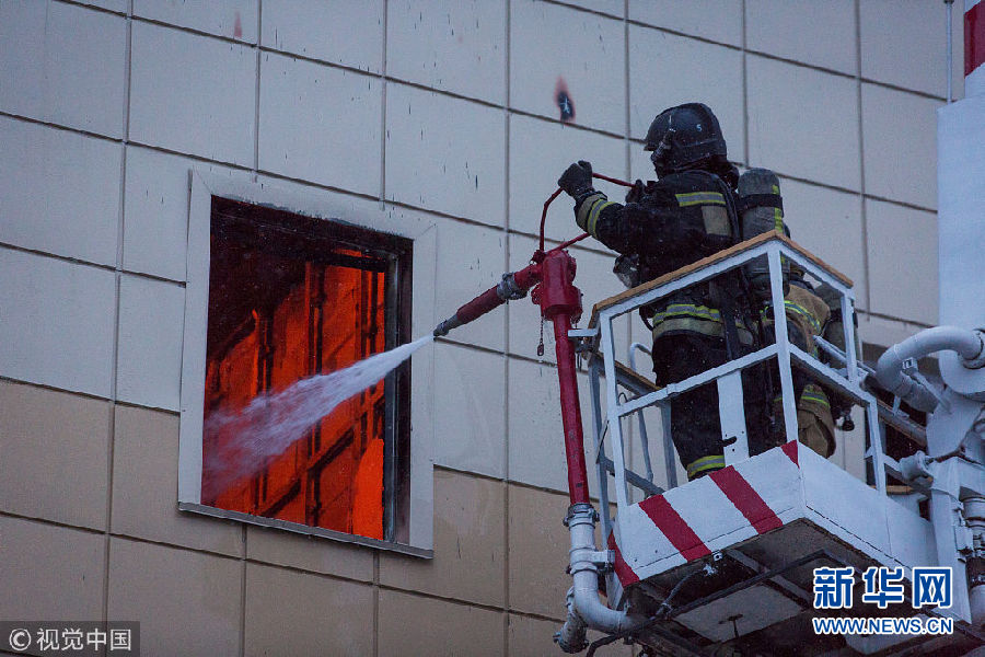 當地時間2018年3月25日,俄羅斯西西伯利亞南部城市克麥羅沃一家購物中心發生重大火災。據俄緊急情況部26日發布的消息,大火已造成64人死亡。(圖片來源:視覺中國)