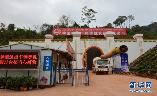 3月26日,老撾磨丁,中老鐵路跨境隧道-友誼隧道出口實拍。中老鐵路跨境隧道友誼隧道建設正順利推進,目前老撾段已掘進300米。新華網發 劉艾倫攝