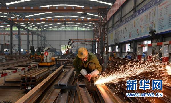 3月27日,在老撾南塔省,中鐵五局工人在車間內加工鐵路施工材料。新華網發 劉艾倫攝