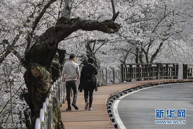 3月30日,韓國河東郡,當地櫻花盛開,吸引游人觀賞。(圖片來源:視覺中國)