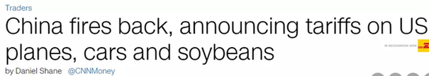CNN發(fā)表題為《中國(guó)還擊,對(duì)美國(guó)進(jìn)口的飛機(jī)、汽車和大豆加征關(guān)稅》的文章。