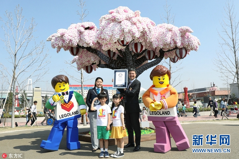 當?shù)貢r間2018年3月28日,日本名古屋,日本樂高樂園主題公園用樂高積木堆出一棵櫻花樹,被吉尼斯世界紀錄認證為世界最高的樂高櫻花樹。(圖片來源:東方IC)