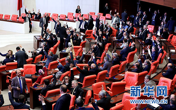 4月18日,在土耳其安卡拉,土耳其大國民議會就延長緊急狀態(tài)進(jìn)行投票。新華社發(fā)