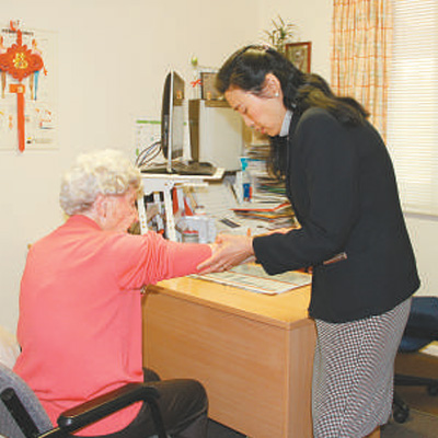 澳大利亞華裔醫生劉英在為患者檢查身體。記者 李鋒 攝