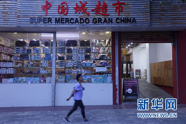5月1日,在多米尼加共和國首都圣多明各,行人經過“中國城”的一家超市。新華社發(羅伯托·古斯曼 攝)