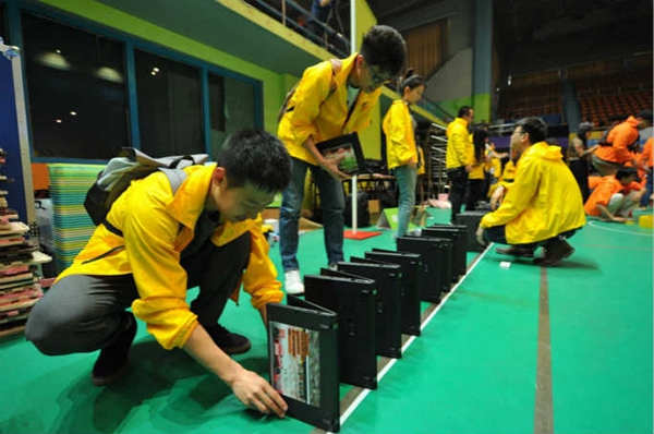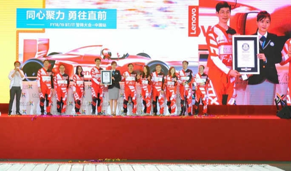 據吉尼斯世界紀錄官網報道,近日,聯想集團在北京航空航天大學體育館舉辦了以“同心聚力,勇往直前”為主題的誓師大會,1300名聯想員工參加了此次大會,并創造了一項新的吉尼斯世界紀錄稱號。在吉尼斯世界紀錄認證官的見證下,所有員工歷時兩小時,用520臺筆記本電腦成功創造“以多米諾骨牌形式擺放并推倒最多筆記本電腦”的新紀錄。