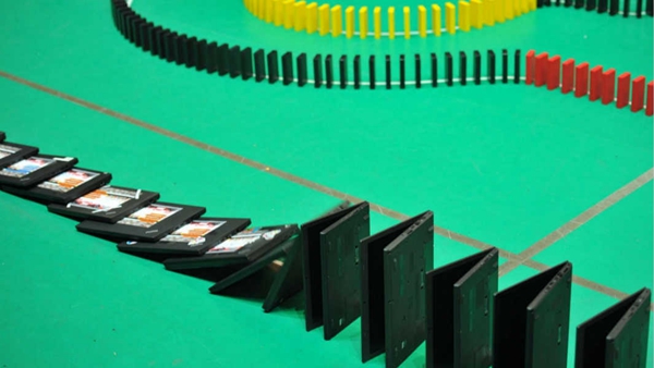 此次的多米諾挑戰除了520臺筆記本外,還準備了45000枚骨牌。活動主題以及工程師們標志性的代碼都成為了多米諾骨牌整體設計的一部分。最終,所有多米諾骨牌和筆記本電腦全部被成功推倒。