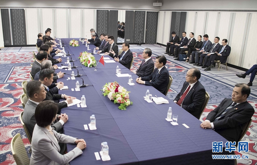 當(dāng)?shù)貢r(shí)間5月10日下午,國務(wù)院總理李克強(qiáng)在東京下榻飯店會(huì)見日本在野黨負(fù)責(zé)人。新華社記者 李濤 攝