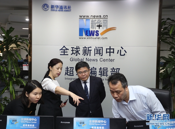 5月16日,外交部拉美司司長(zhǎng)趙本堂(左三)接受了新華網(wǎng)獨(dú)家專(zhuān)訪。圖為新華網(wǎng)副總編輯劉娟(左二)介紹新華網(wǎng)情況。新華網(wǎng)記者 郭小天攝