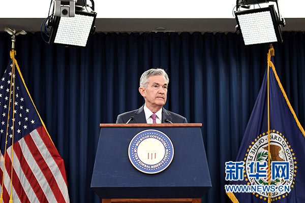 6月13日,在美國首都華盛頓,美國聯邦儲備委員會主席鮑威爾出席新聞發布會。新華社記者 楊承霖 攝