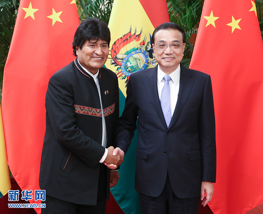李克強指出,中方愿同玻方抓住兩國關系發展的新機遇,推動經貿、旅游、人文合作,增加進口玻方有競爭力、高質量的產品。加強產能合作,深化資源開發利用,推動玻工業化進程。中玻合作是南南合作的組成部分,中方愿同包括玻方在內的拉美國家一道,維護發展中國家共同利益,促進世界和平、穩定與發展。