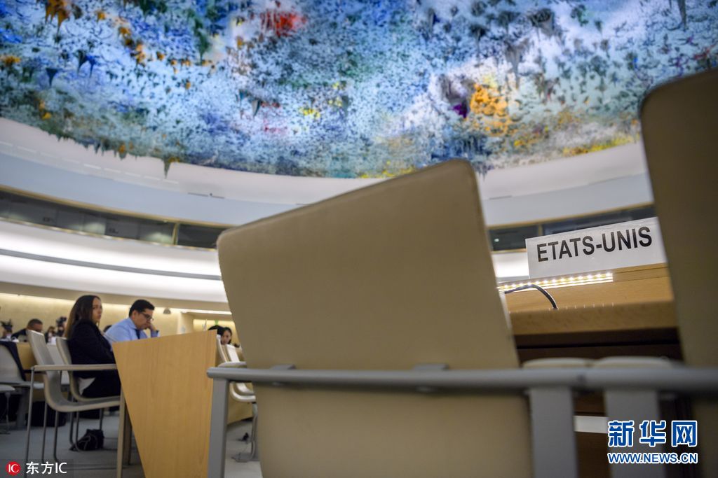 6月20日,瑞士日內瓦,聯合國人權理事會召開會議,美國代表席位空缺。美國常駐聯合國代表黑莉19日下午在華盛頓宣布,美國退出聯合國人權理事會。(圖片來源:東方IC)