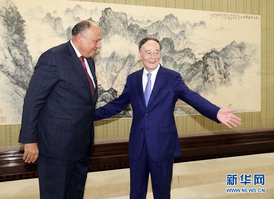 在會見舒凱里時,王岐山表示,埃及是第一個承認新中國的阿拉伯國家和非洲國家。近年來,在習近平主席和塞西總統(tǒng)的親自引領下,中埃關(guān)系持續(xù)穩(wěn)定發(fā)展。中國依然是發(fā)展中國家,發(fā)展不平衡不充分是我們面對的主要矛盾。中方愿同埃方加強各領域務實合作,使新時期中埃全面戰(zhàn)略伙伴關(guān)系取得更多成果,并對進一步促進中阿、中非關(guān)系發(fā)揮作用。
