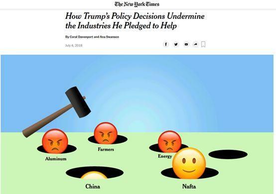 多位接受《紐約時報》采訪的經貿學者還“一針見血”地指出了特朗普對中國等國家發動貿易戰的一個最本質問題:他看似是想幫助美國的企業,可他與他團隊那些混亂與缺乏清晰性的政策,卻令他的”幫助”呈現出一種“按下葫蘆浮起瓢”的尷尬場景,結果就是很多企業乃至整個都不知道該怎么去面對這些變化了。