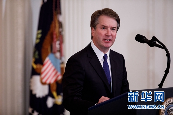 7月9日,在美國華盛頓白宮,布雷特·卡瓦諾發(fā)表講話。美國總統(tǒng)特朗普9日宣布,提名布雷特·卡瓦諾出任美國聯(lián)邦最高法院大法官。特朗普當(dāng)日晚間在白宮講話時宣布了這一決定,卡瓦諾同家人一起出席了提名典禮。新華社發(fā)(沈霆攝)