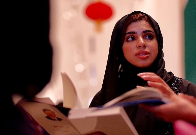 阿聯酋讀者在中國圖書展銷周期間相互交流。新華社記者 鄭開君攝