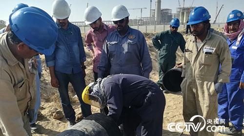 “熱”土到底有多熱?1月份就已達(dá)到30多度的塔爾,進(jìn)入3月份氣溫已達(dá)到39℃,溫度將逐漸升到45℃以上,加上超強(qiáng)紫外線的“摧殘”,在這樣的工作環(huán)境下,DN400的管道溝下安裝無論是對質(zhì)量的要求,還是對施工人員來說,難度都特別大,為了保障質(zhì)量過關(guān),每一道口中方負(fù)責(zé)人都親自把關(guān),親自驗收,絕不允許任何不利于質(zhì)量的情況發(fā)生。