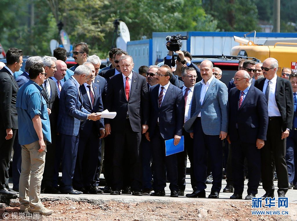 當?shù)貢r間2018年8月11日,土耳其奧爾杜,土耳其總統(tǒng)埃爾多安赴當?shù)匾暡旌闉膮^(qū)。 (圖片來源:視覺中國)