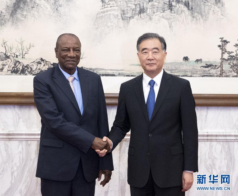 9月1日,全國(guó)政協(xié)主席汪洋在北京釣魚(yú)臺(tái)國(guó)賓館會(huì)見(jiàn)幾內(nèi)亞總統(tǒng)孔戴。 新華社記者王曄攝