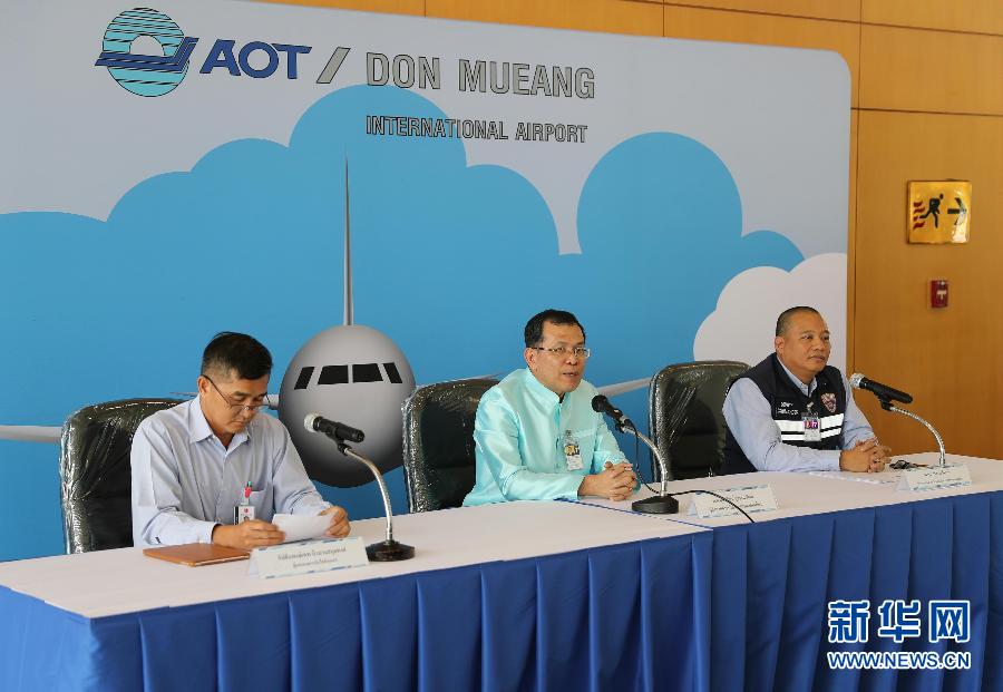 9月29日,在泰國曼谷廊曼機場,機場管理局局長素提拉瓦(中)在發布會上發言。 新華社記者張可任攝
