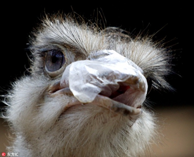 因誤食游客投喂食物的包裝袋