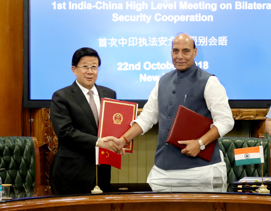 10月22日,中國與印度首次執法安全高級別會晤在新德里舉行。國務委員、公安部部長趙克志與印度內政部部長辛格共同簽署了《中華人民共和國公安部與印度共和國內政部合作協議》。