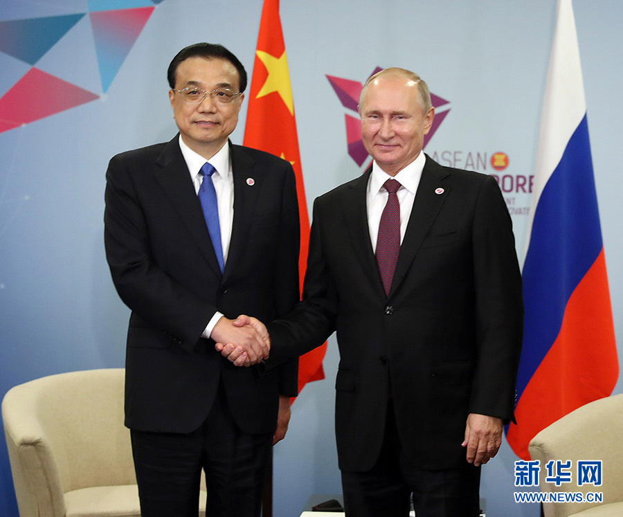 11月15日,國務(wù)院總理李克強在新加坡會展中心會見俄羅斯總統(tǒng)普京。 新華社記者 劉衛(wèi)兵 攝
