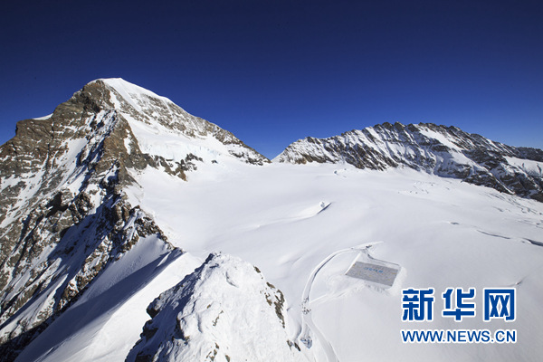 這是11月16日拍攝的瑞士少女峰下阿萊奇冰川上的世界最大明信片。新華社記者 徐金泉 攝