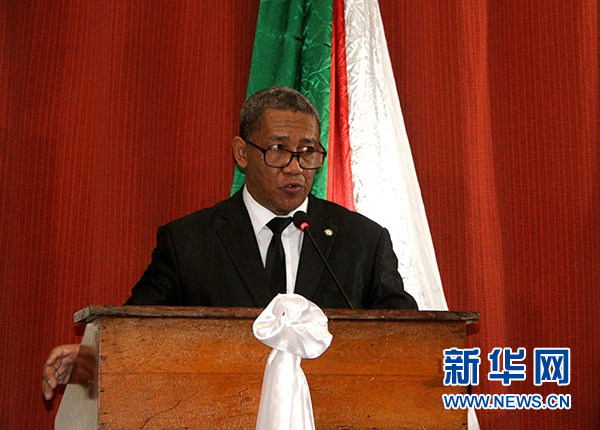 11月17日,在馬達加斯加塔那那利佛,馬達加斯加國家獨立選舉委員會主席拉庫圖馬納納在宣布計票結果前發表演講。 新華社發(西塔卡攝)