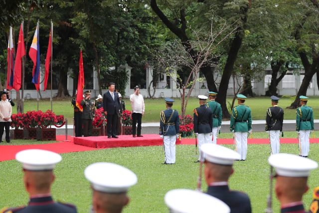 11月20日,國家主席習近平在馬尼拉同菲律賓總統杜特爾特舉行會談。會談開始前,習近平出席杜特爾特在總統府前草坪舉行的隆重歡迎儀式。新華社記者丁林攝