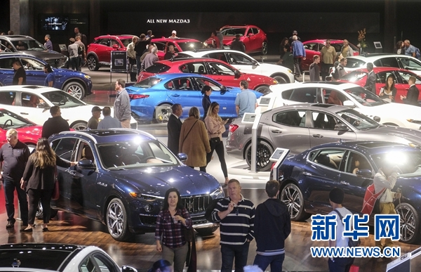 11月30日,在美國洛杉磯,人們參觀車展。 新華社發(趙漢榮攝)